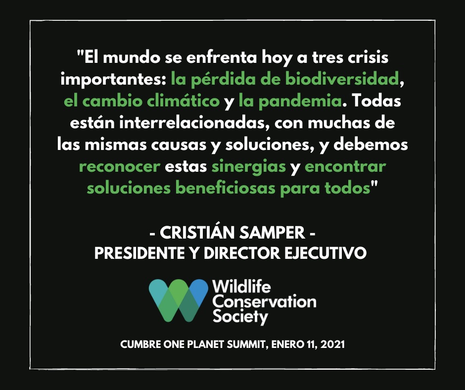 Cristián Samper, Presidente y CEO de Wildlife Conservation Society (WCS), participó en la Cumbre One Planet, el pasado 11 de enero de 2021. Aquí su intervención: