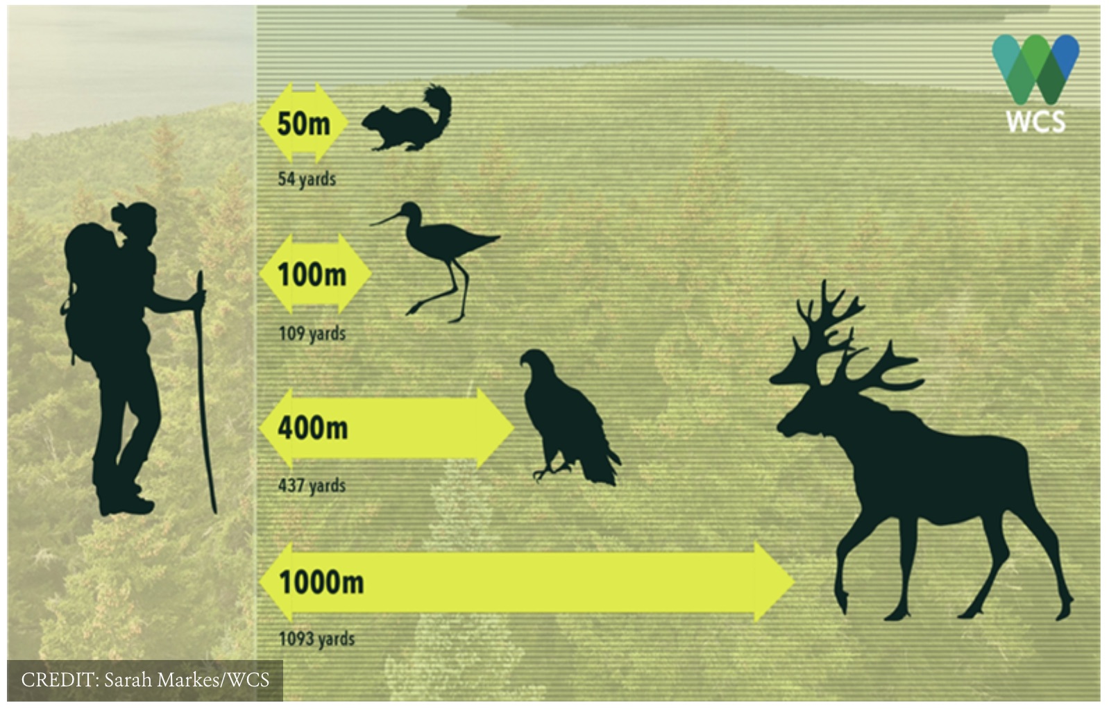 Dos metros de distancia social puede ser la nueva norma entre las personas. Un nuevo informe de WCS dice que si no quieres molestar a la vida silvestre, tienes que mantenerte muy lejos.