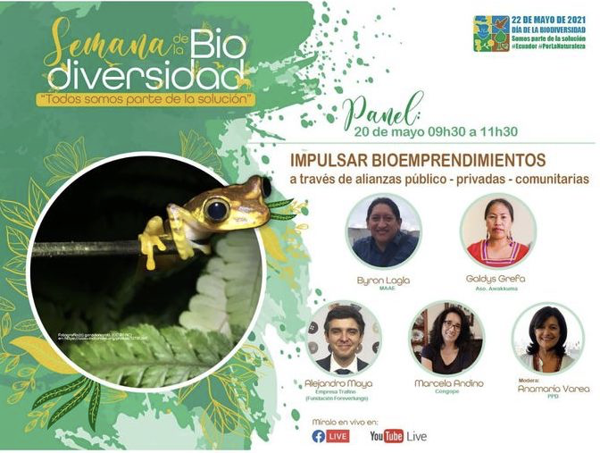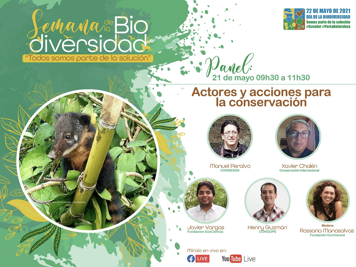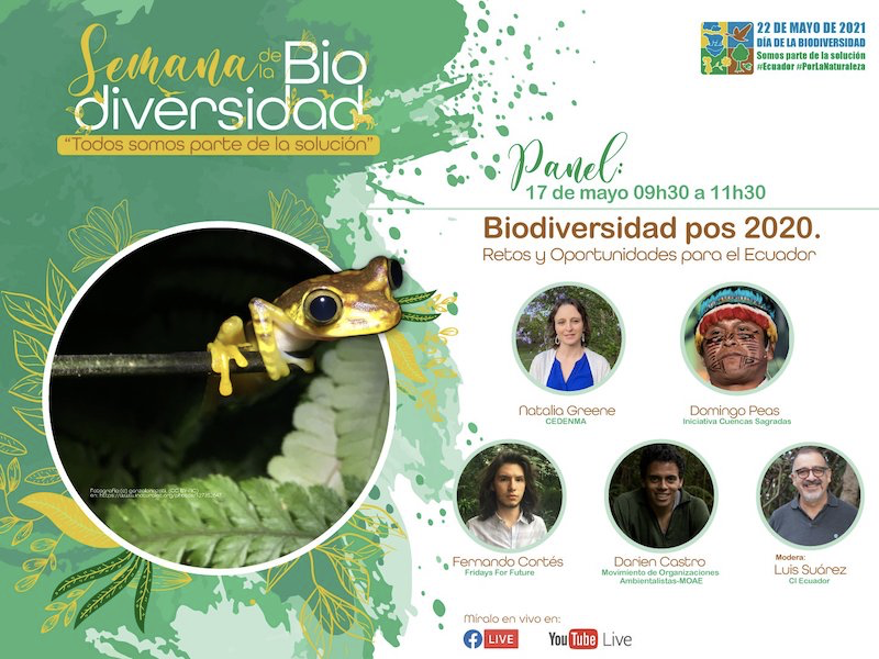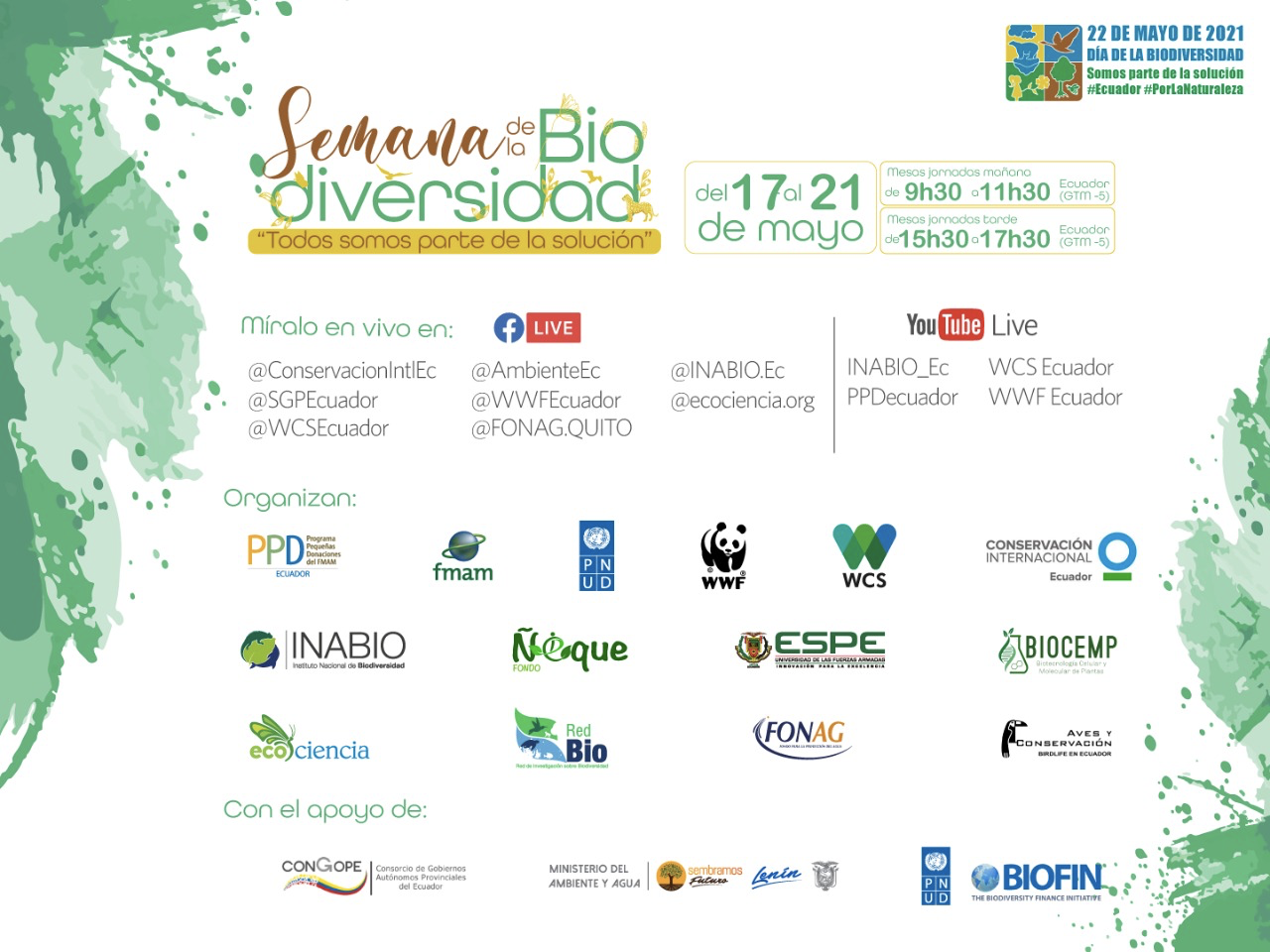 Al conmemorarse el próximo 22 de mayo el Día Internacional de la Diversidad Biológica, el Programa de Pequeñas Donaciones de PNUD, WWF-Ecuador, WCS Ecuador, Conservación Internacional, Instituto Nacional de Biodiversidad-INABIO, Fondo Socioambiental Ñeque, Escuela Politécnica del Ejérito-ESPE, Biotecnología Celular y Molecular de Plantas-BIOCEMP, Ecociencia, Red Nacional de Investigación sobre Biodiversidad-RedBio, Fondo para la Protección del Agua-FONAG, Aves y Conservación-Birdlife en Ecuador , con el apoyo del Ministerio del Ambiente y Agua-MAAE, Consorcio de Gobiernos Autónomos Provinciales del Ecuador-CONGOPE, y BIOFIN PNUD, presentan el evento virtual “Semana de la Biodiversidad”.