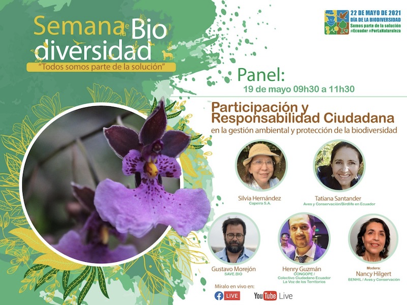 09h30 – Participación y responsabilidad ciudadana en la gestión ambiental y protección de la biodiversidad. (Aves & Conservación, Birdlilfe International en Ecuador)