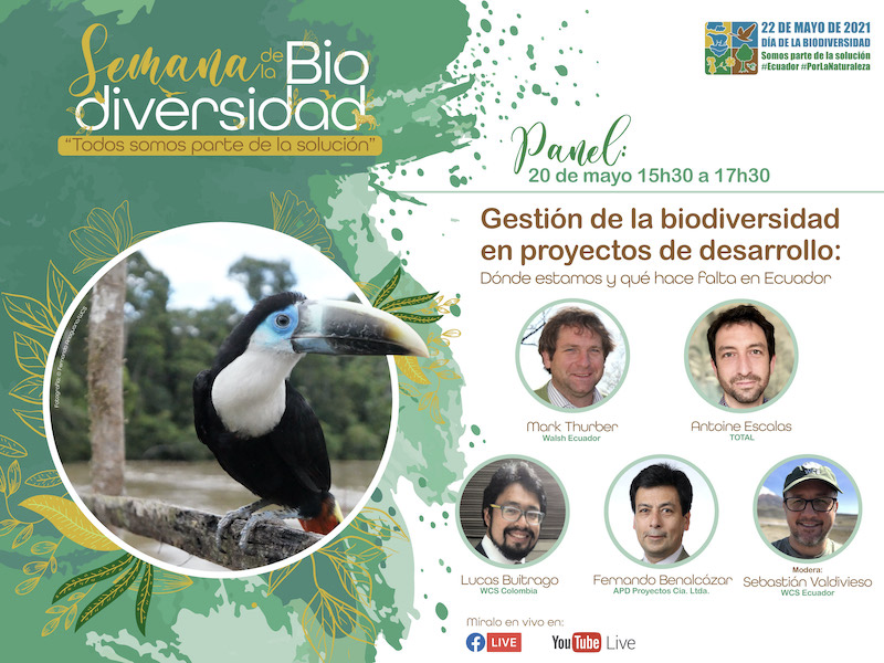 15h30 – Gestión de la biodiversidad en proyectos de desarrollo: Dónde estamos y qué hace falta en Ecuador. (WCS Ecuador)