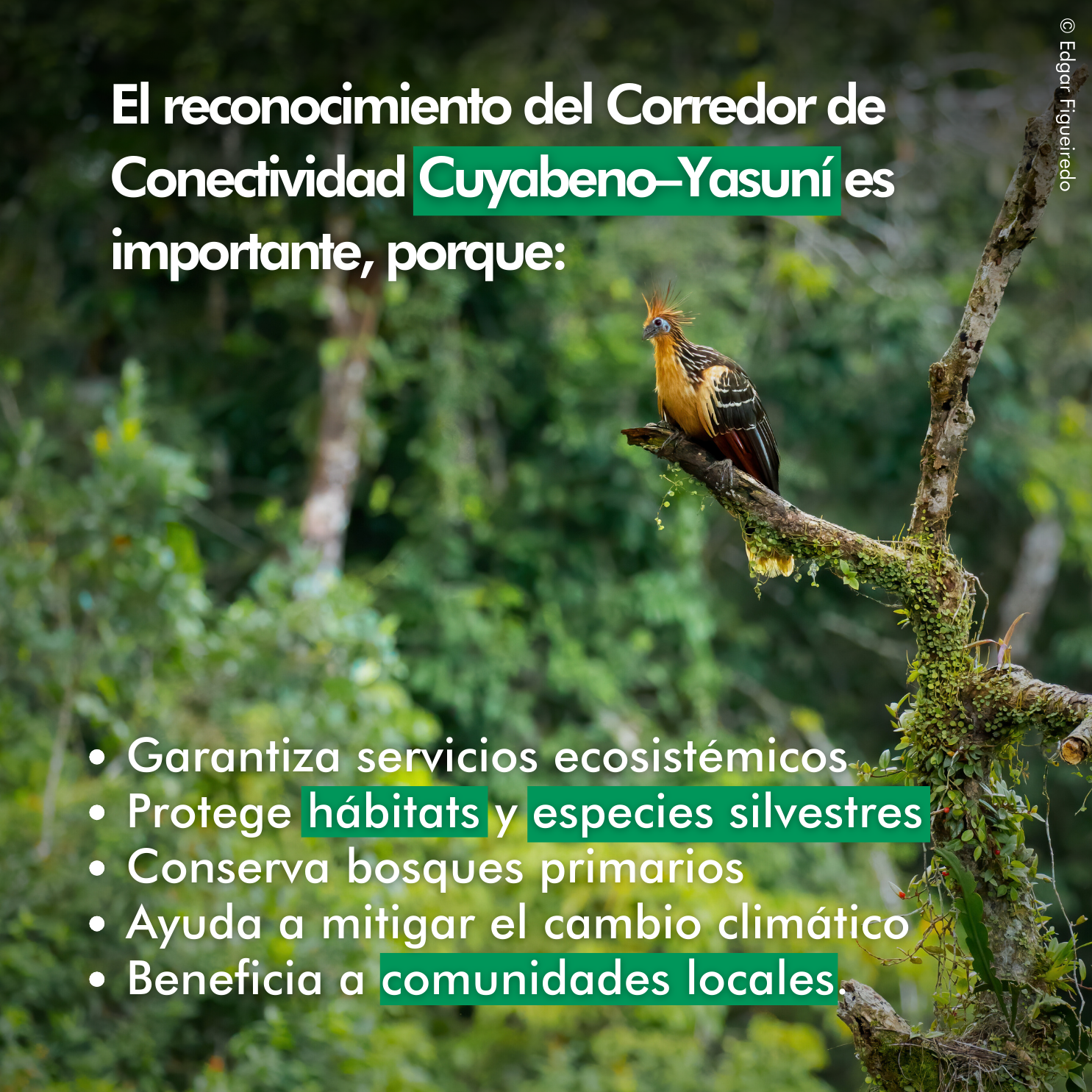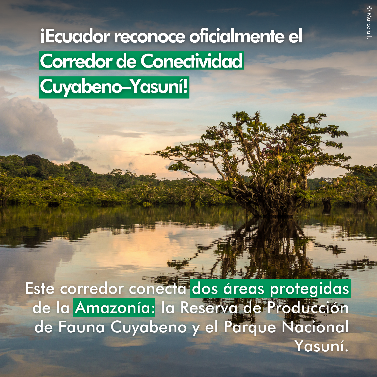 Con el Corredor de Conectividad Cuyabeno–Yasuní, Ecuador refuerza su compromiso por una conservación integral a escala de paisaje y con visión de futuro, articulando esfuerzos locales, nacionales e internacionales para proteger la Amazonía, el ecosistema de agua dulce más grande y biodiverso del mundo.