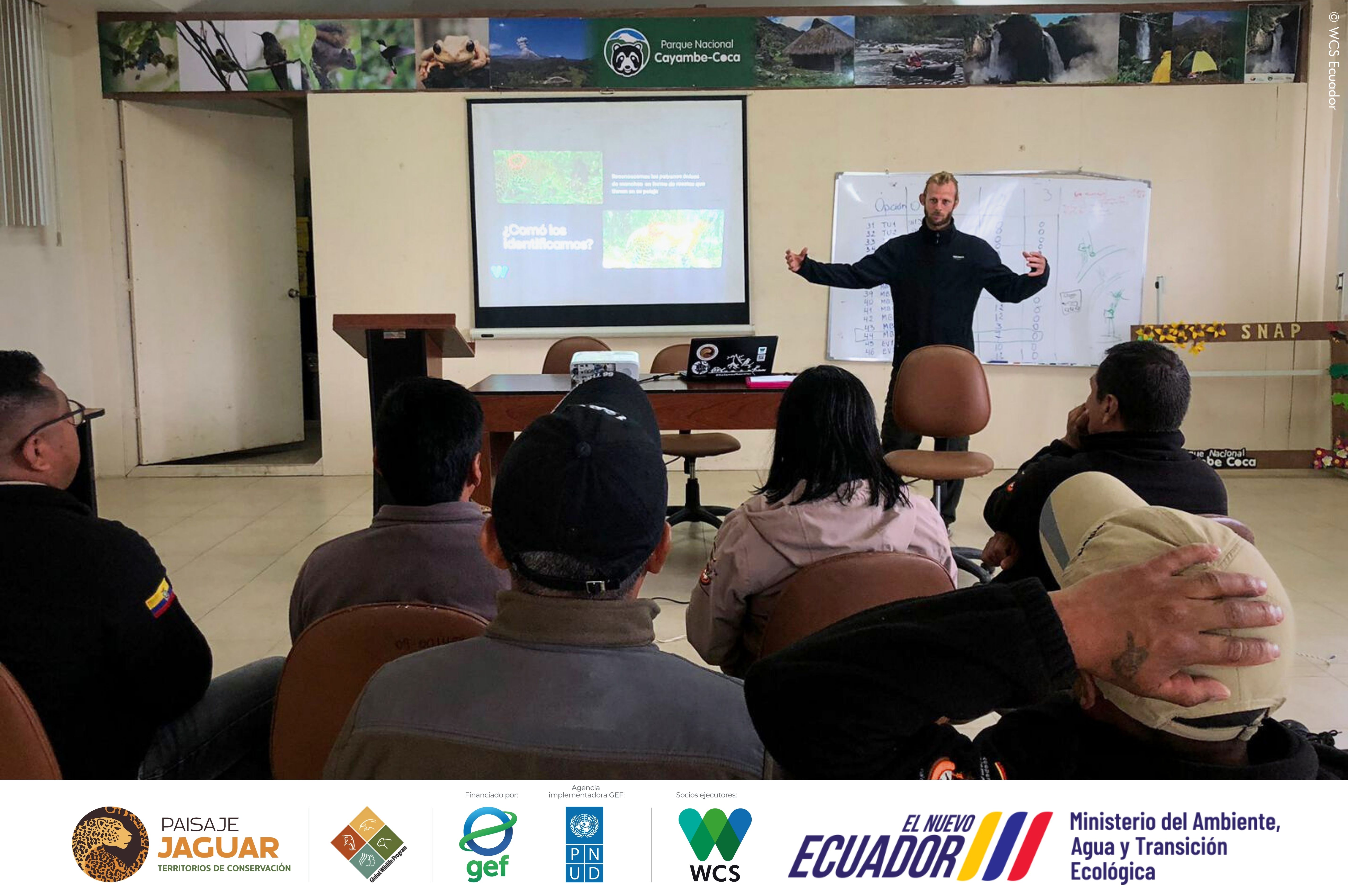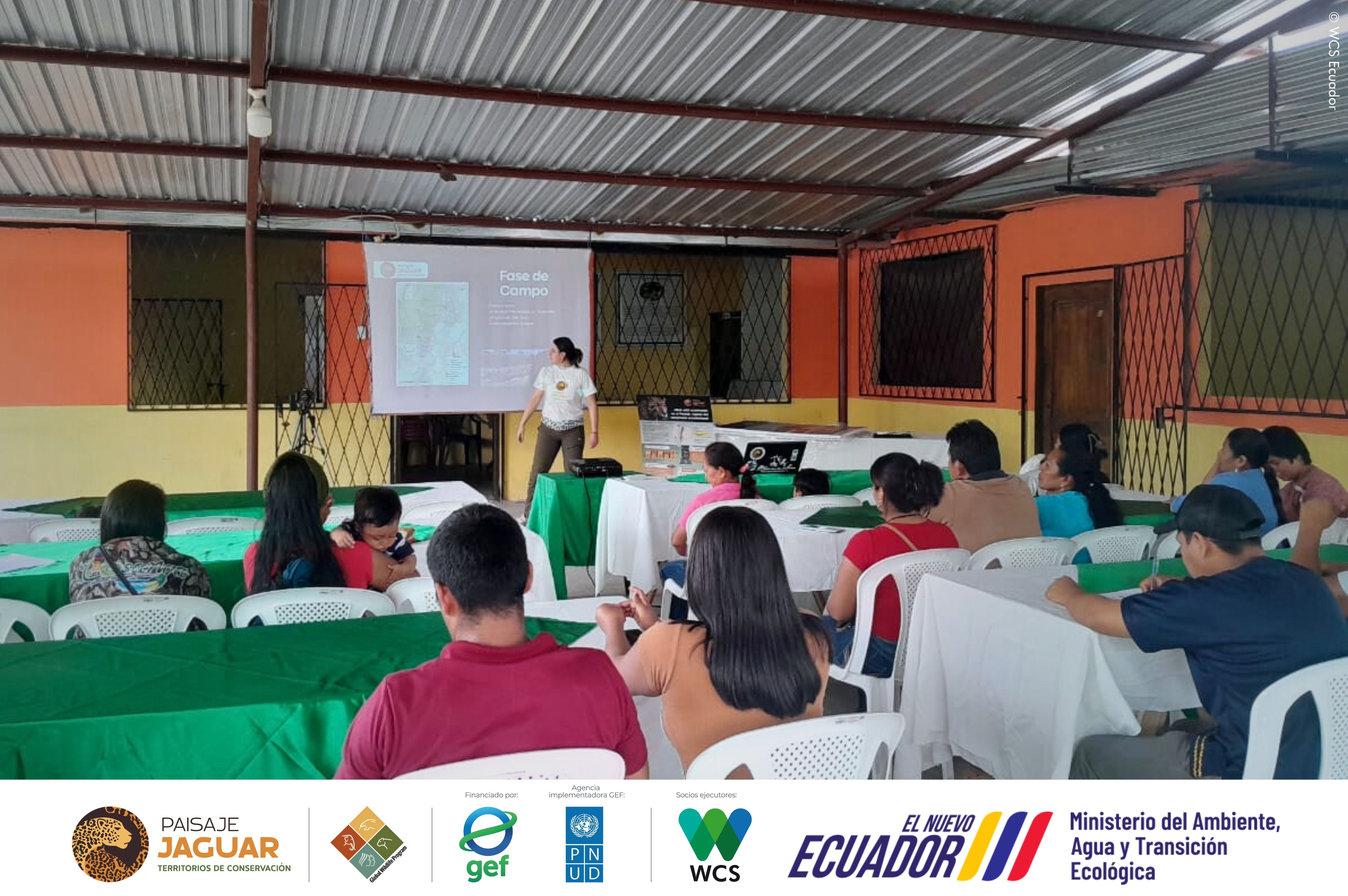 En las dos sesiones, el equipo técnico de WCS Ecuador compartió información sobre la presencia del jaguar, la diversidad de especies clave registradas, las rutas de movimiento detectadas y los factores que amenazan su supervivencia.