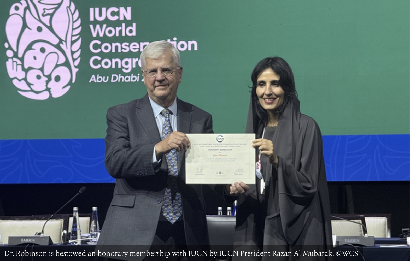 Wildlife Conservation Society (WCS) felicita al Dr. John G. Robinson por ser nombrado Miembro Honorario de la Unión Internacional para la Conservación de la Naturaleza (UICN), —una de las distinciones más altas de la Unión— en reconocimiento a sus extraordinarias contribuciones a la ciencia, la política y el liderazgo en conservación global.