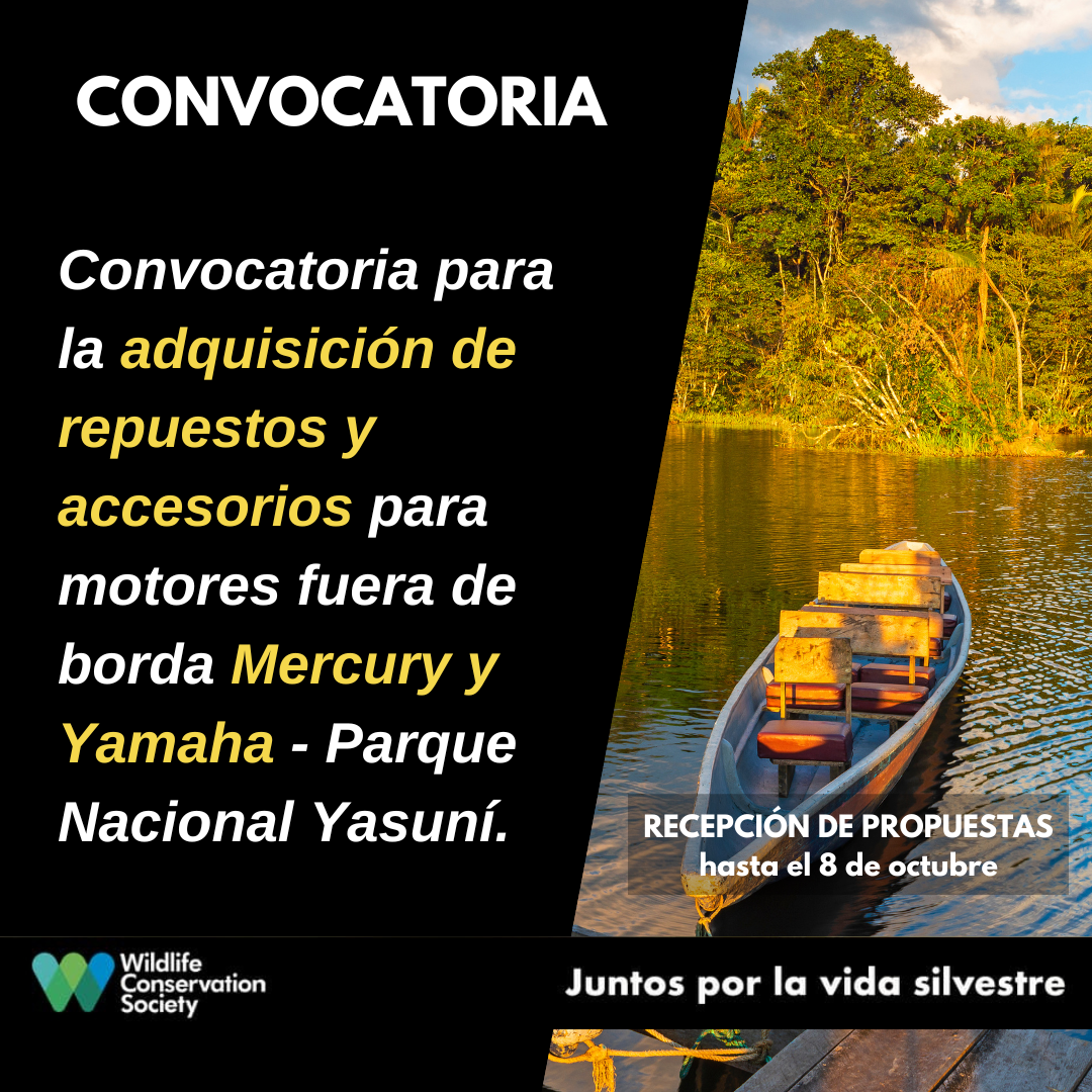 Referencia: Convocatoria para la adquisición de repuestos y accesorios para motores fuera de borda Mercury y Yamaha - Parque Nacional Yasuní (El Coca, Orellana).